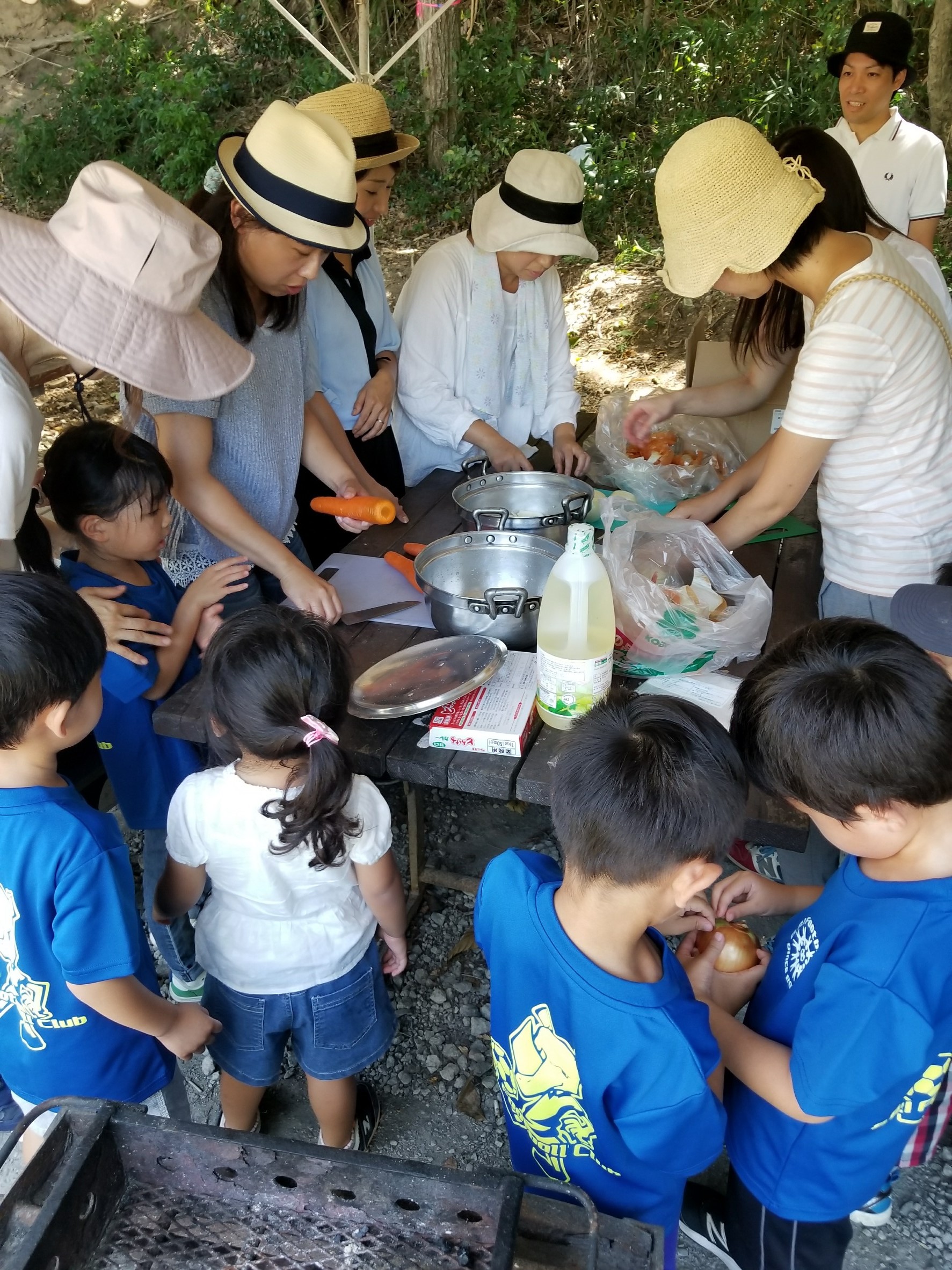 買い出し→カレー作り→散策→昼食→工作→サッカー大会→ジャンケン大会→解散