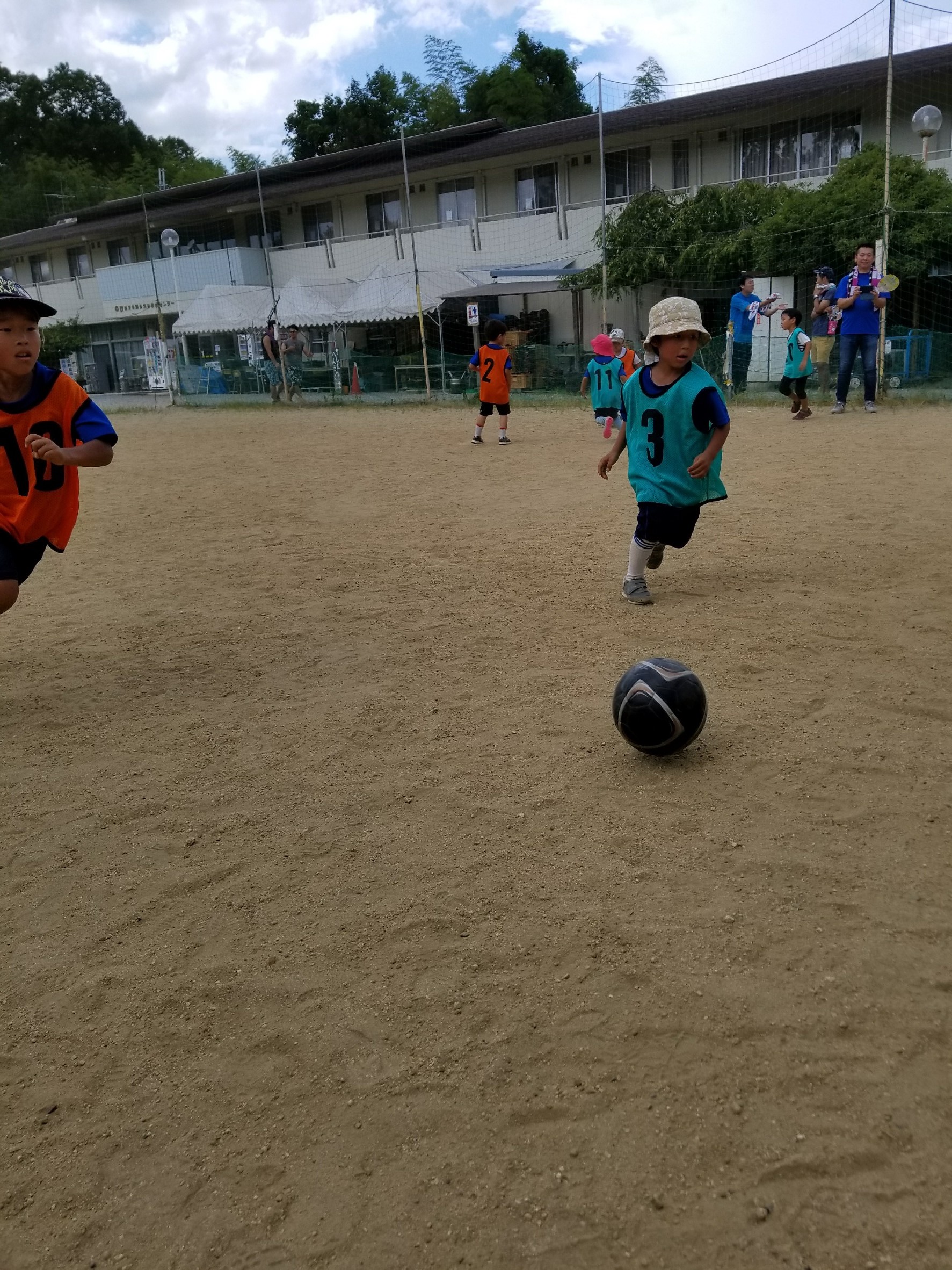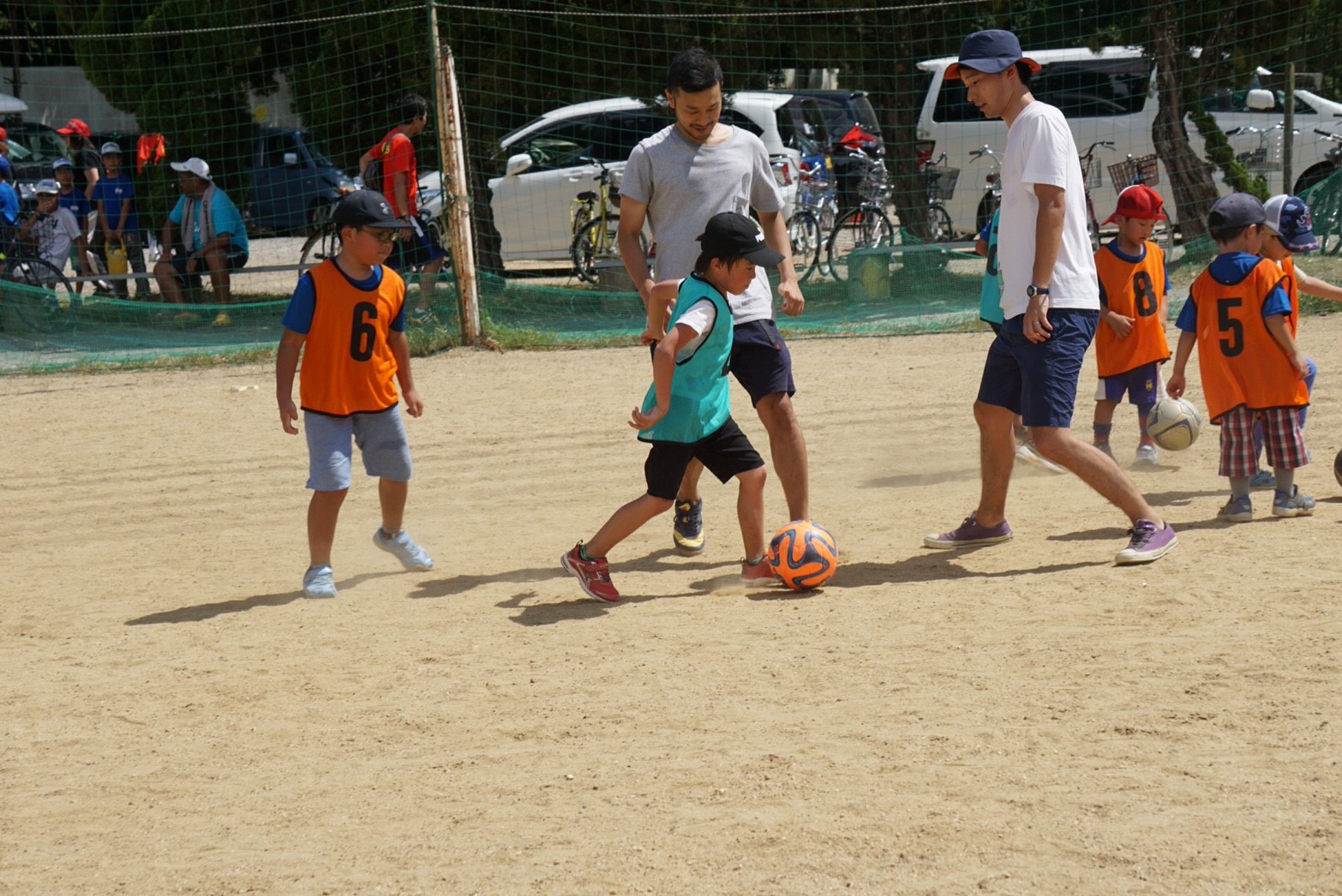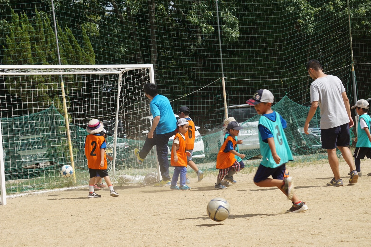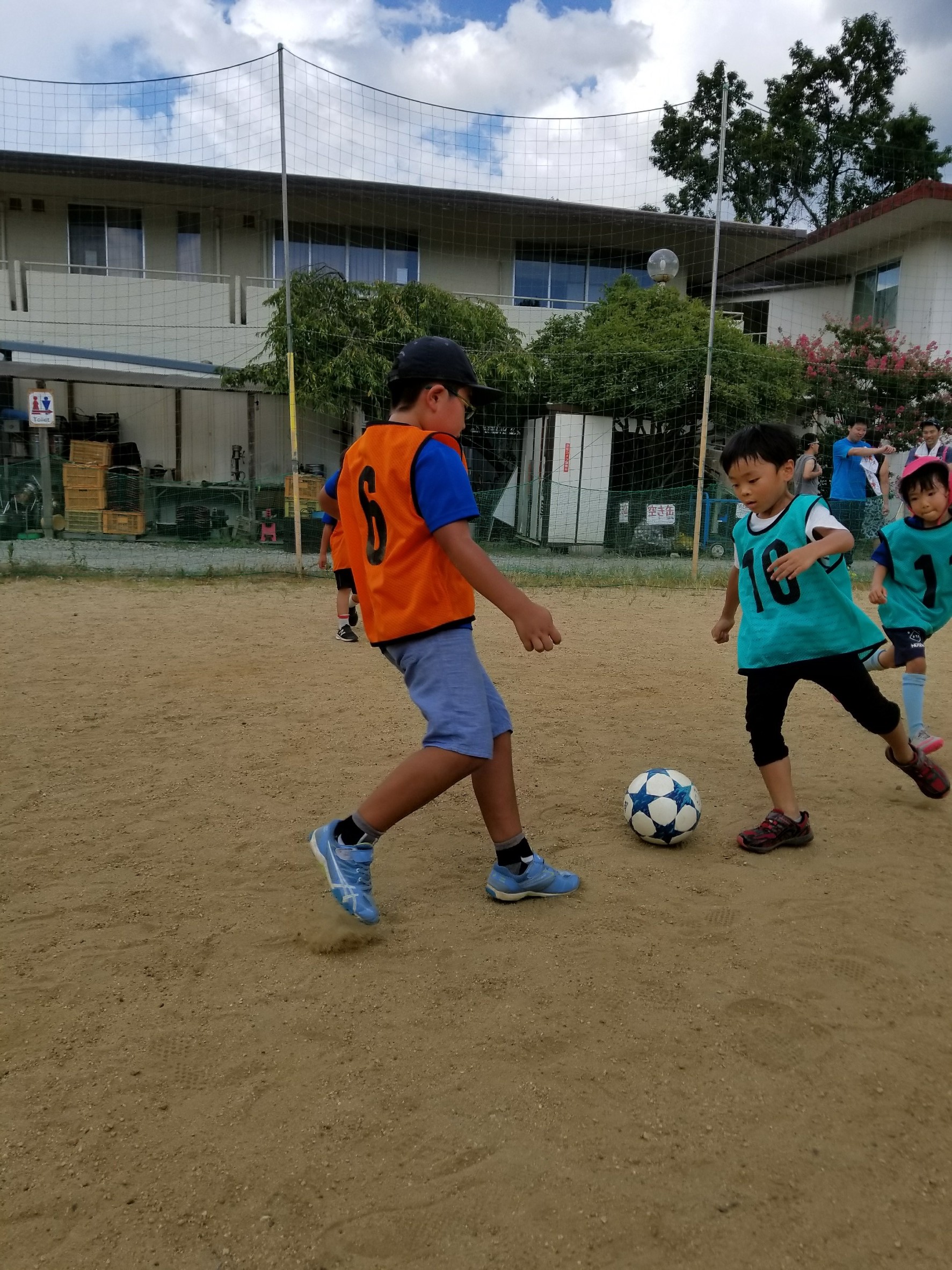 お母さん方も真剣な表情で子供と一緒にボールを蹴っていましたね!