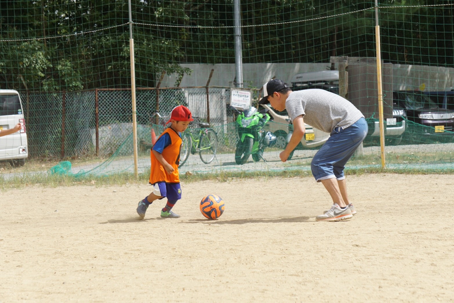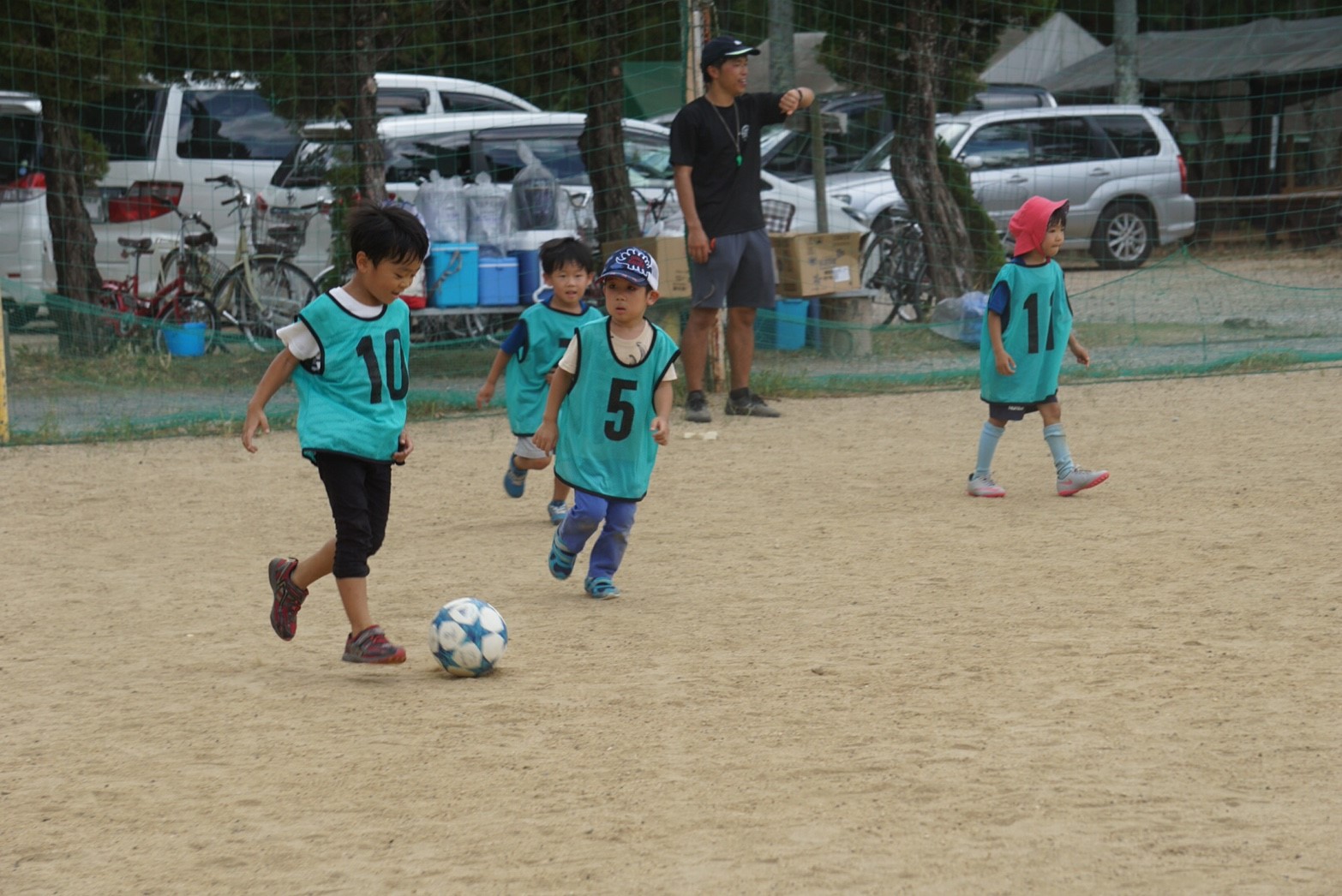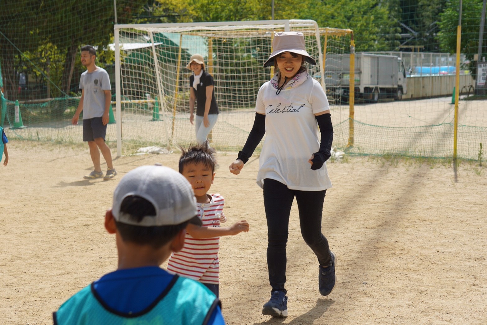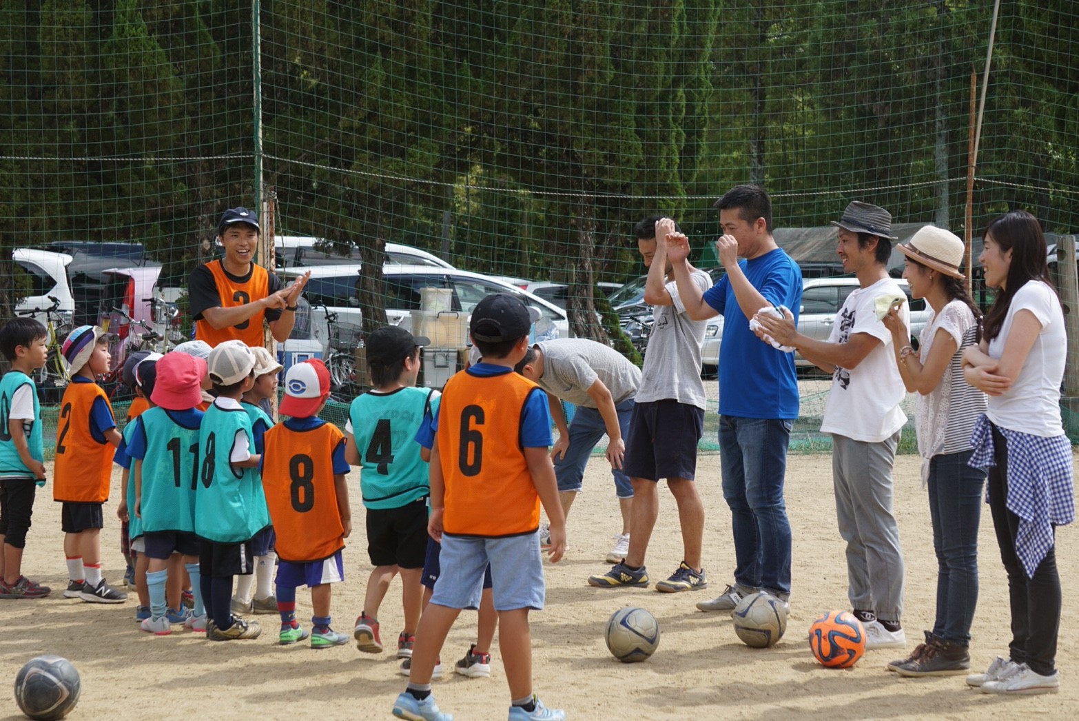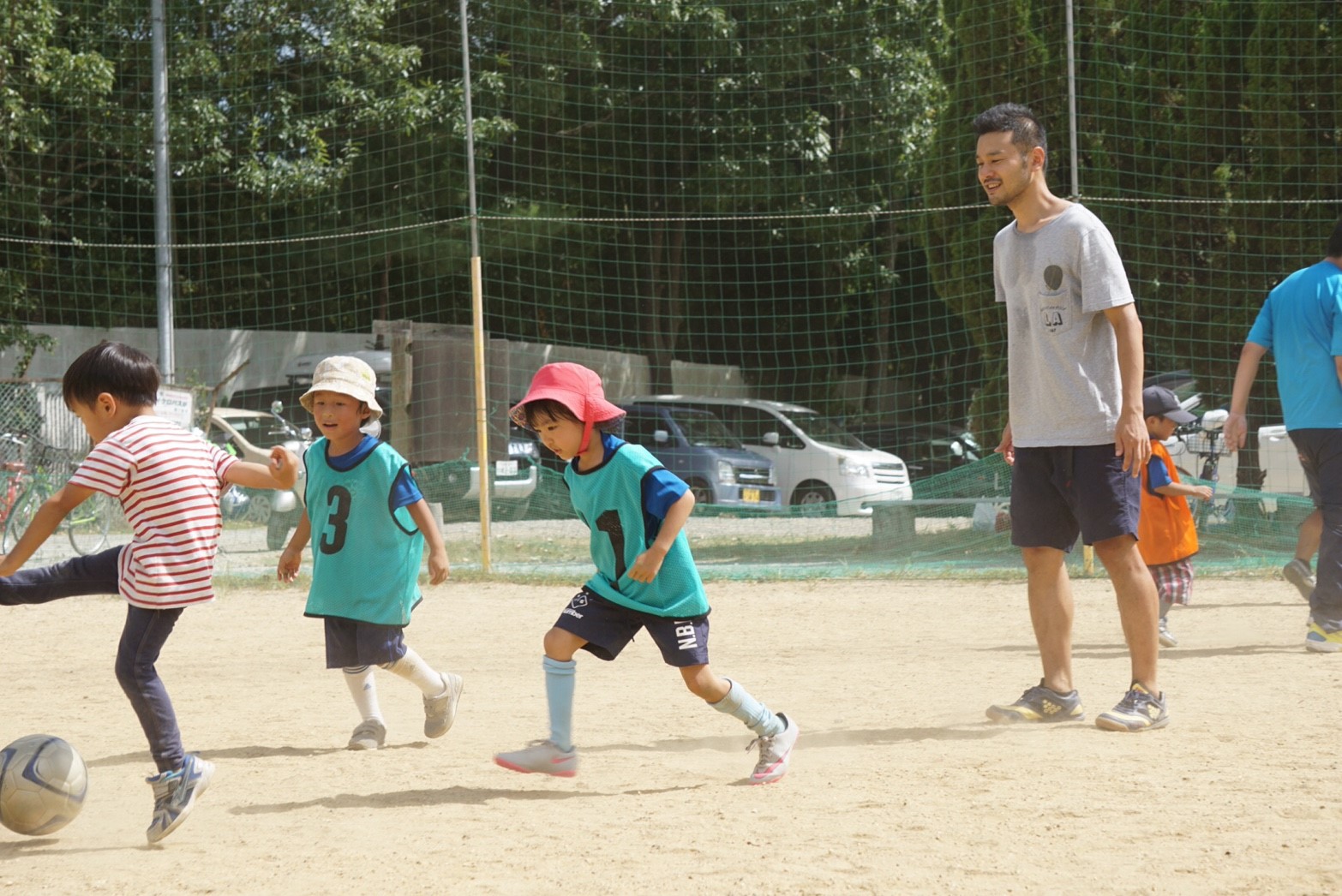 お母さん方も真剣な表情で子供と一緒にボールを蹴っていましたね!