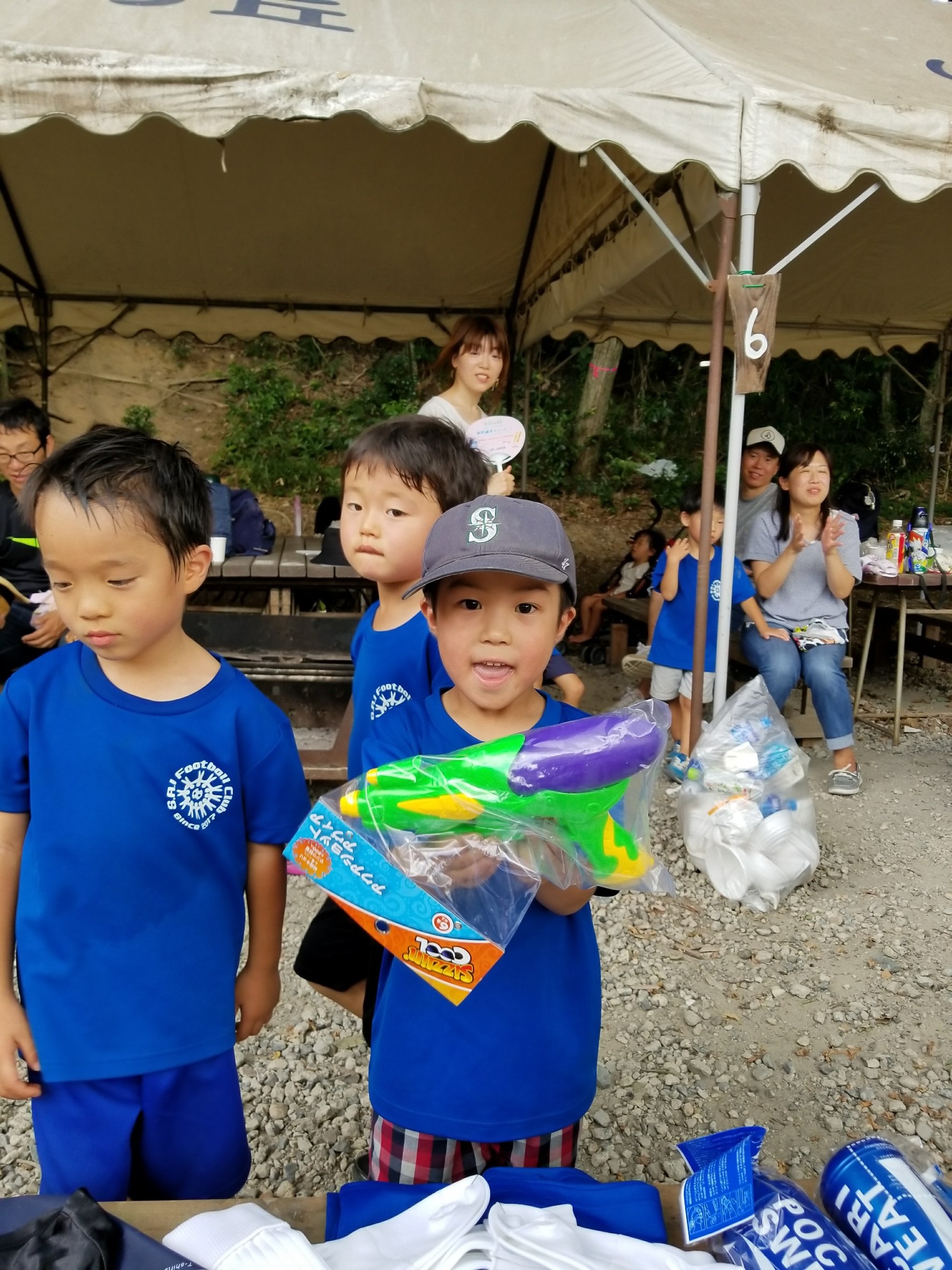 1人1つの景品を用意しました。某100円ショップからサッカーボールまで幅広い景品を揃えました!S.A.I football clubのオリジナルプラクティスシャツは人気でず、、、残念。。。
