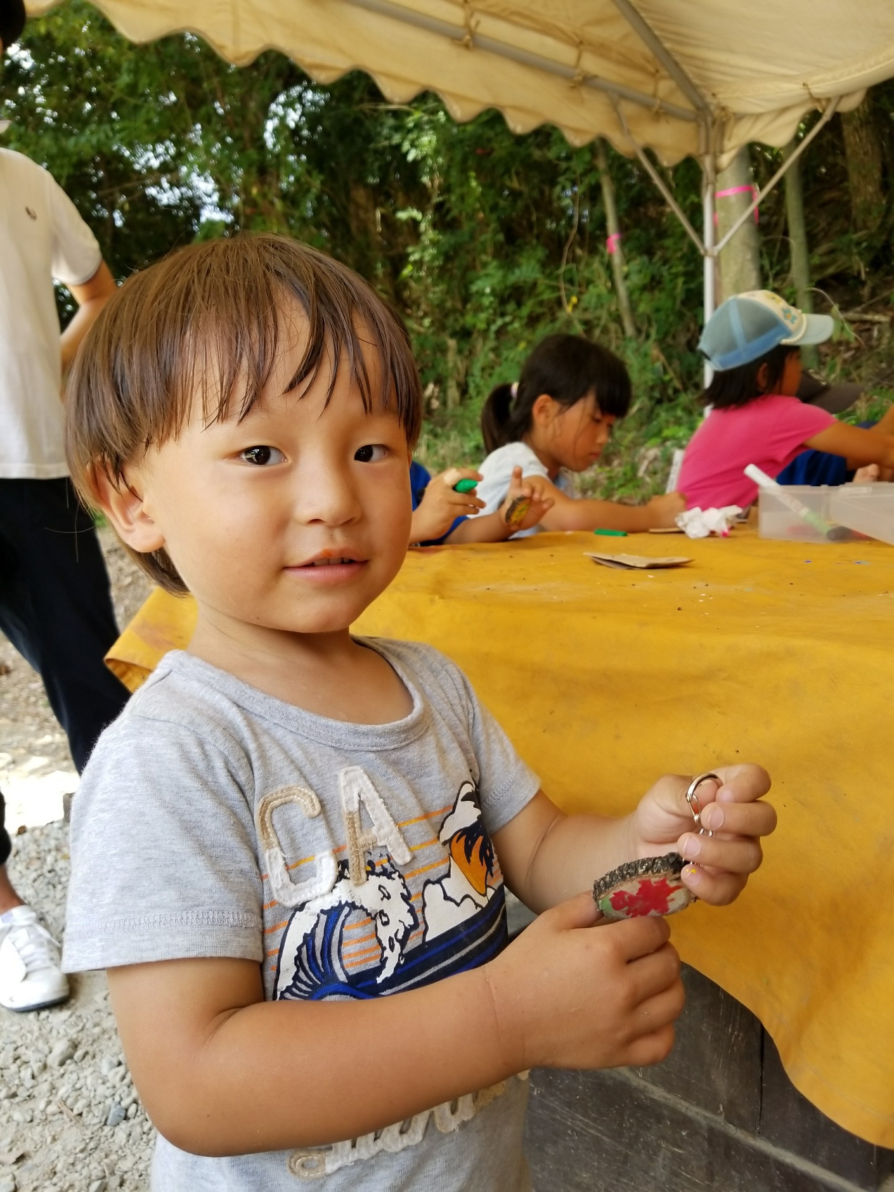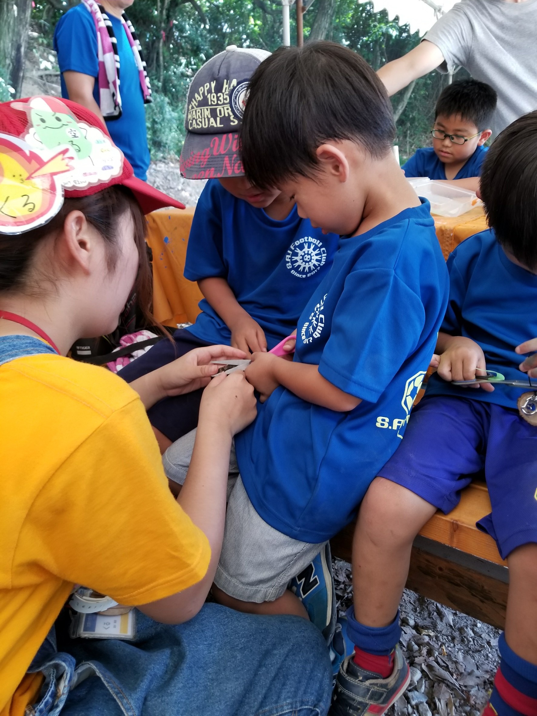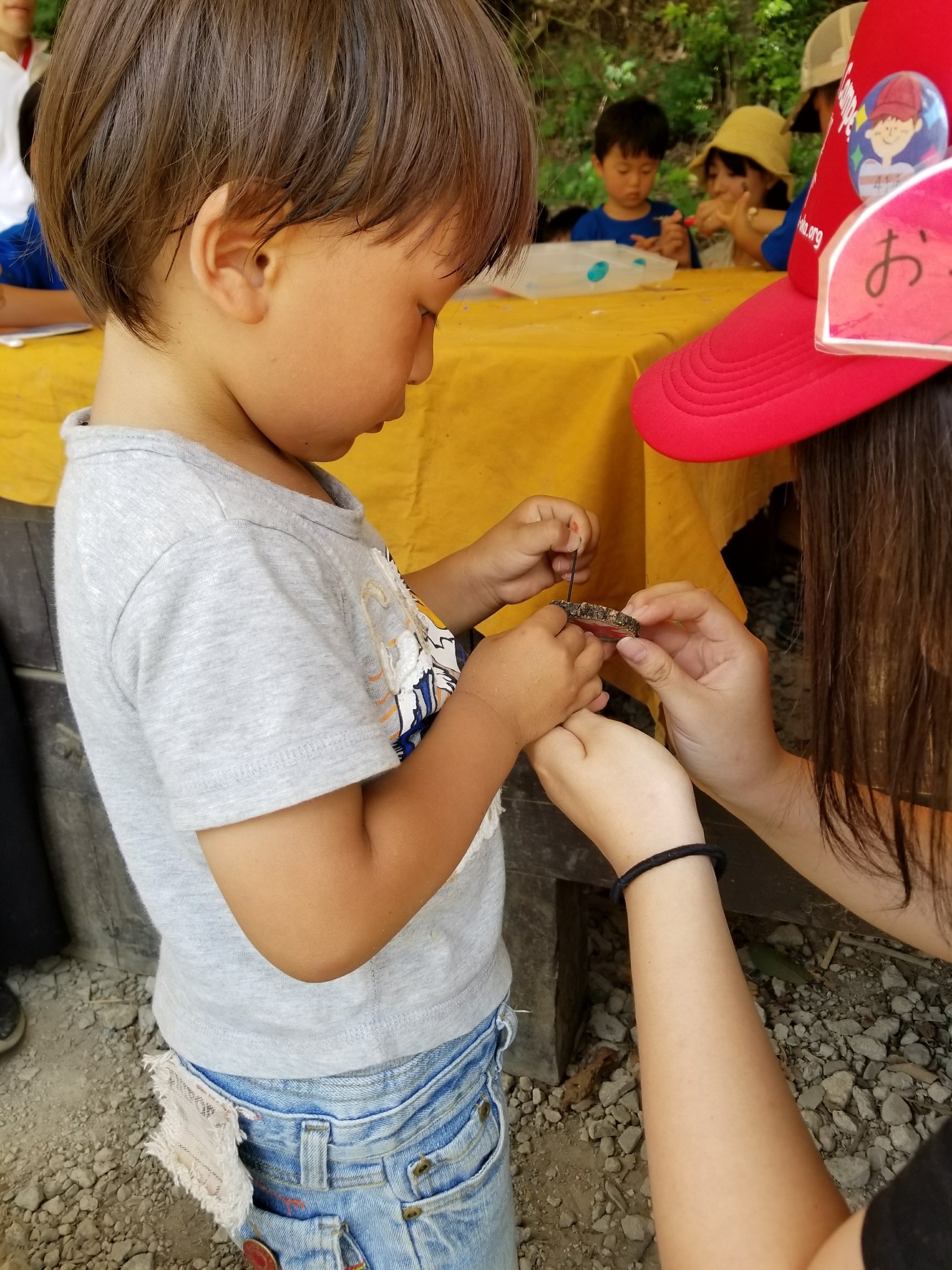 昼食の後は工作!手作りキーホルダー、みんな大事に使ってね!