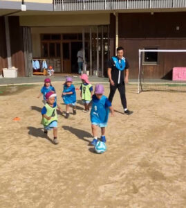 毎週火曜日、大原野幼稚園の園庭とホールをお借りしているサッカースクールとなります。