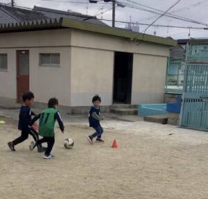 ボールフィーリング→ドリブル→パス→シュート→試合の盛りだくさんの内容で、最後までみな楽しく集中して取り組めました🔥