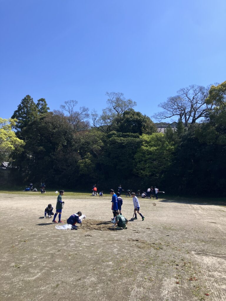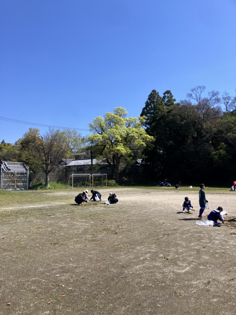 そんなわけで今日は平日の忙しい朝に、子どもと保護者様に集まっていただき、グラウンド整備+初練習を2時間で行いました👍